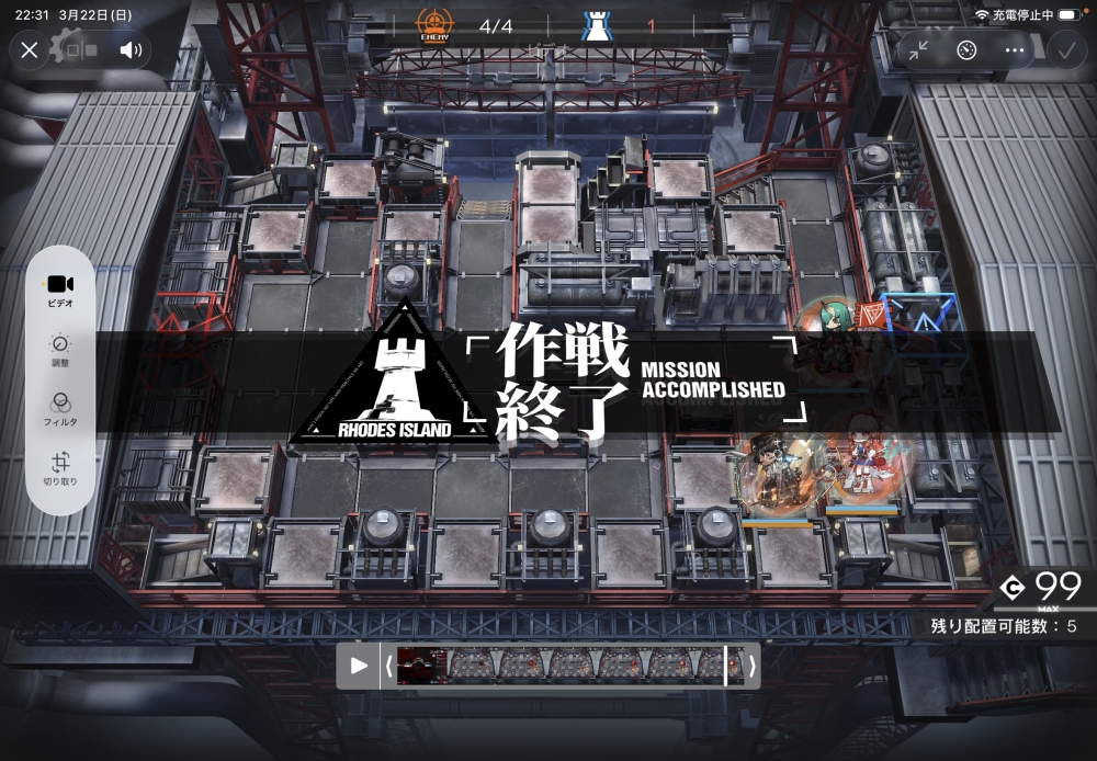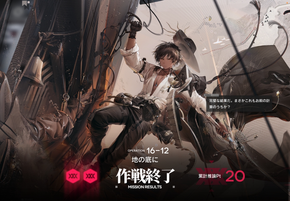あとは、このまま敵を倒して作戦終了。無事、アークナイツ 16-12 攻略完了です。お疲れさまでした。