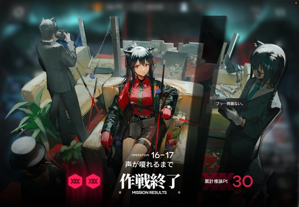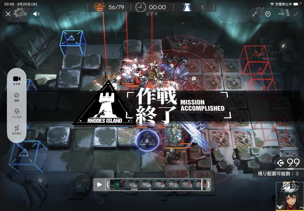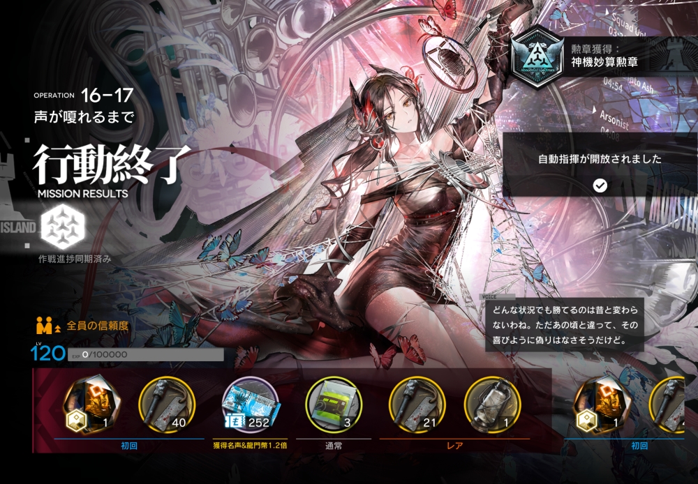 あとは、このまま敵を倒して作戦終了。無事、アークナイツ 16-17 攻略完了です。お疲れさまでした。