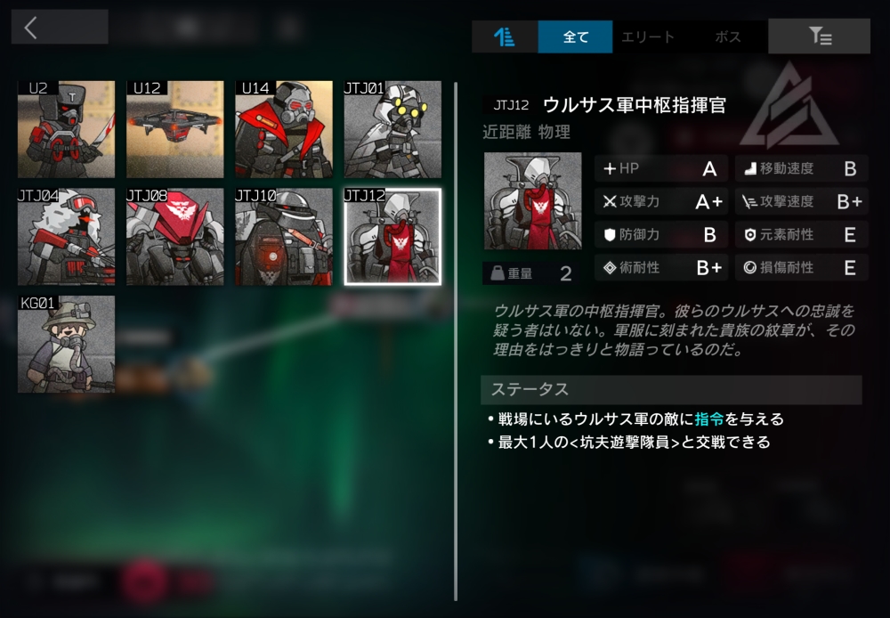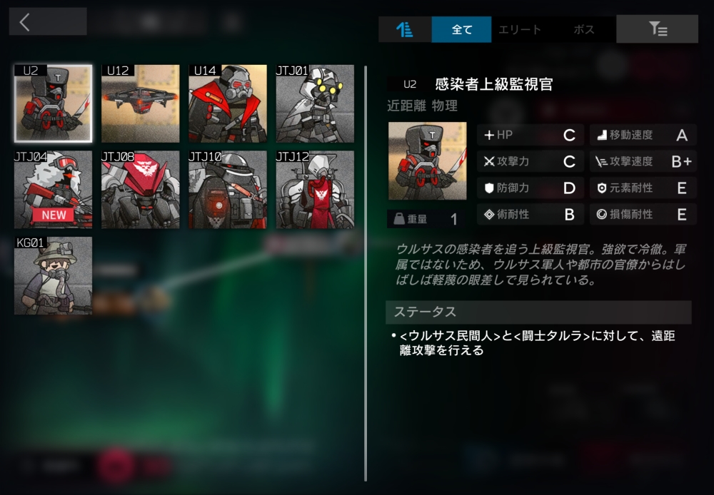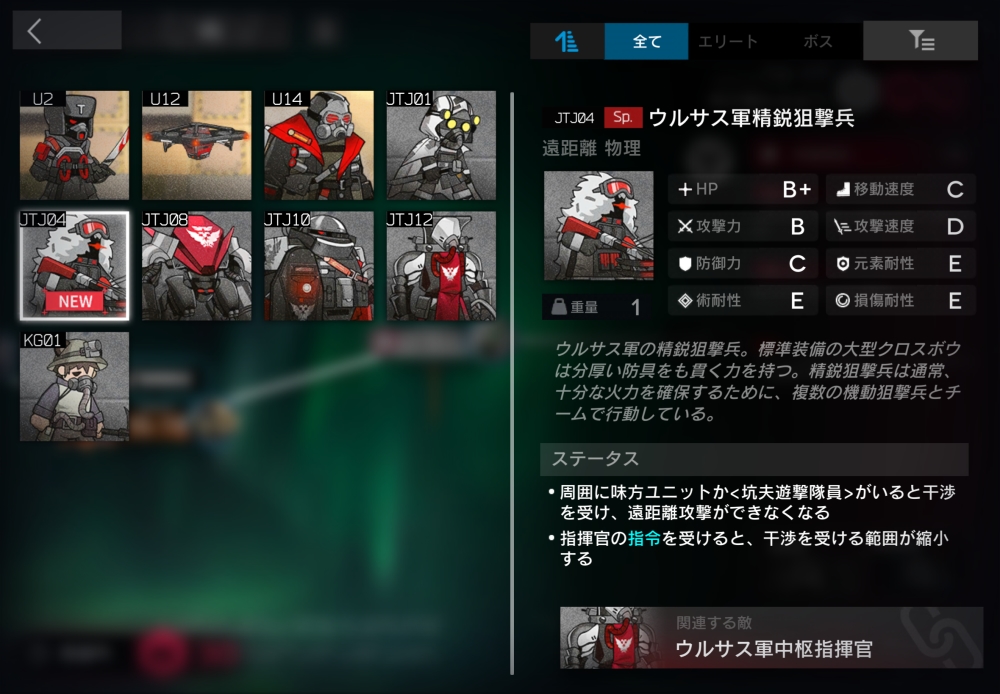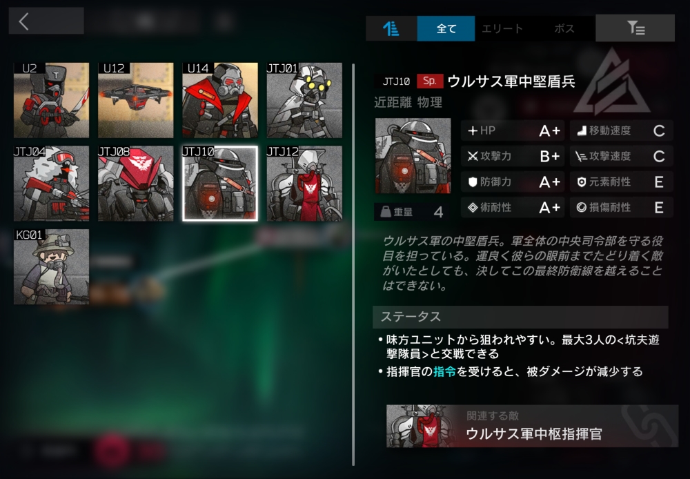 ウルサスの感染者許さないマンの偉い人。ウルサス民間人に対して遠距離攻撃してくる。18体ほど襲いかかってくる。