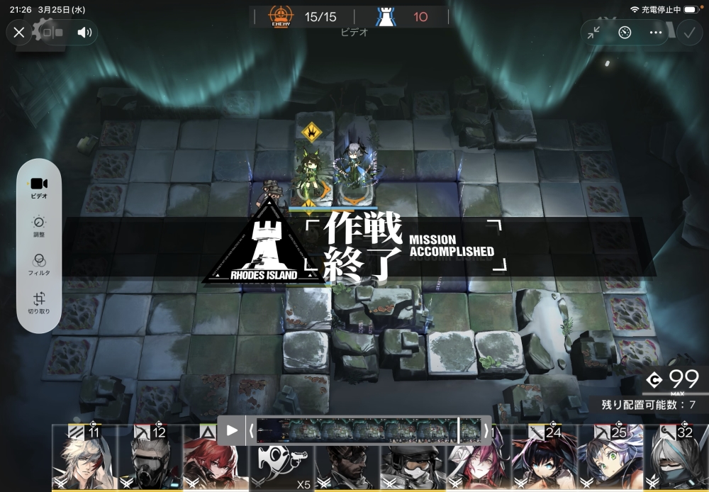 あとは、このまま敵を倒して作戦終了。無事、アークナイツ 16-18 攻略完了です。お疲れさまでした。
