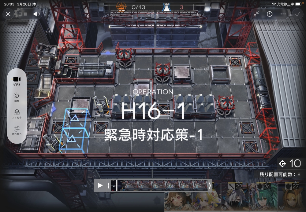 アークナイツ H16-1 緊急時対応策-1の攻略をしていきます。
