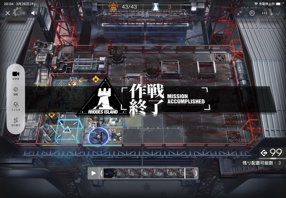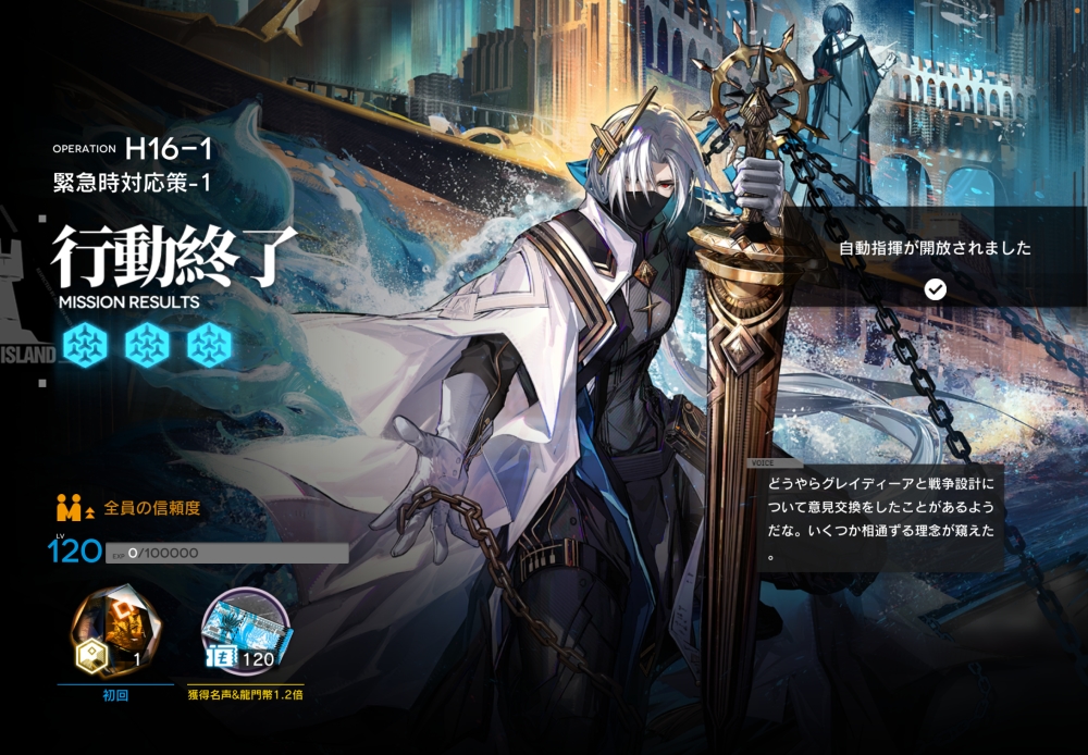あとは、このまま敵を倒して作戦終了。無事、アークナイツ H16-1 攻略完了です。お疲れさまでした。