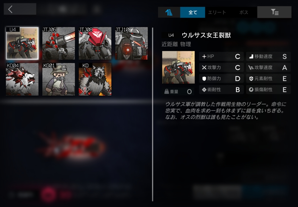 ウルサス裂獣のボス。蜂でいう嬢王蜂みたいな存在(適当)。11匹ほど噛み付いてくる。