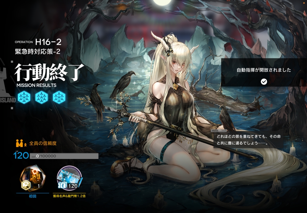 あとは、このまま敵を倒して作戦終了。無事、アークナイツ H16-2 攻略完了です。お疲れさまでした。