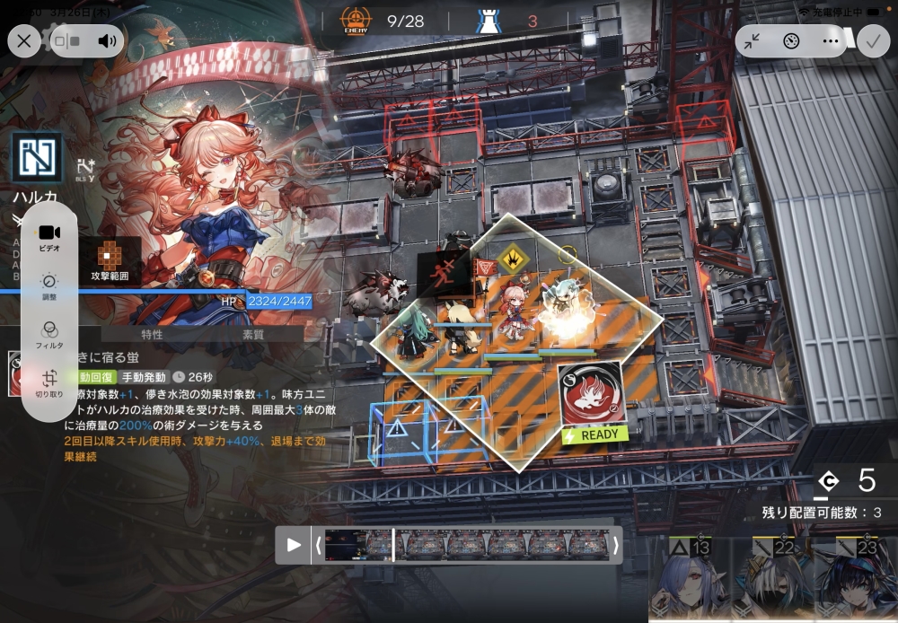 続いて、スキルで周囲を同時に回復させたいので、補助のハルカちゃんを投入。スキルゲージは溜まり次第解放で。