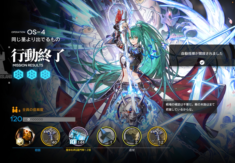 あとは、このまま敵を倒して作戦終了。無事、アークナイツ OS-4 攻略完了です。お疲れさまでした。
