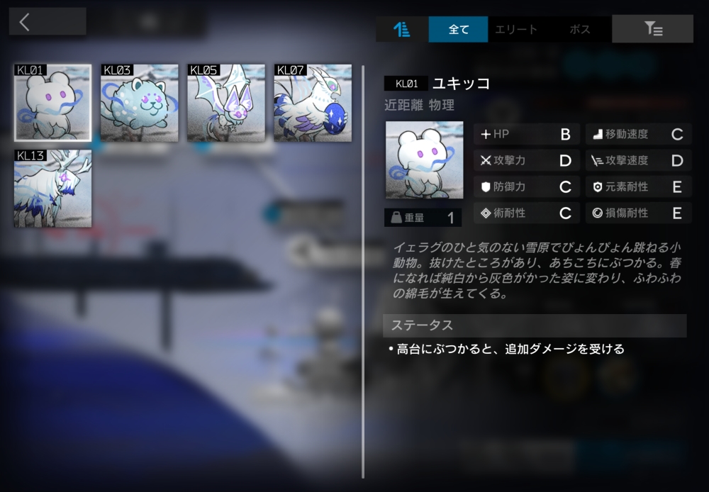 イェラグのひと気のない雪原でぴょんぴょん跳ねる小動物。強制移動で高台・マップ外周に衝突すると5000の確定ダメージを受ける。この効果は5秒のクールタイムがある。16体ほど襲いかかってくる。