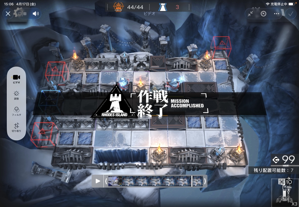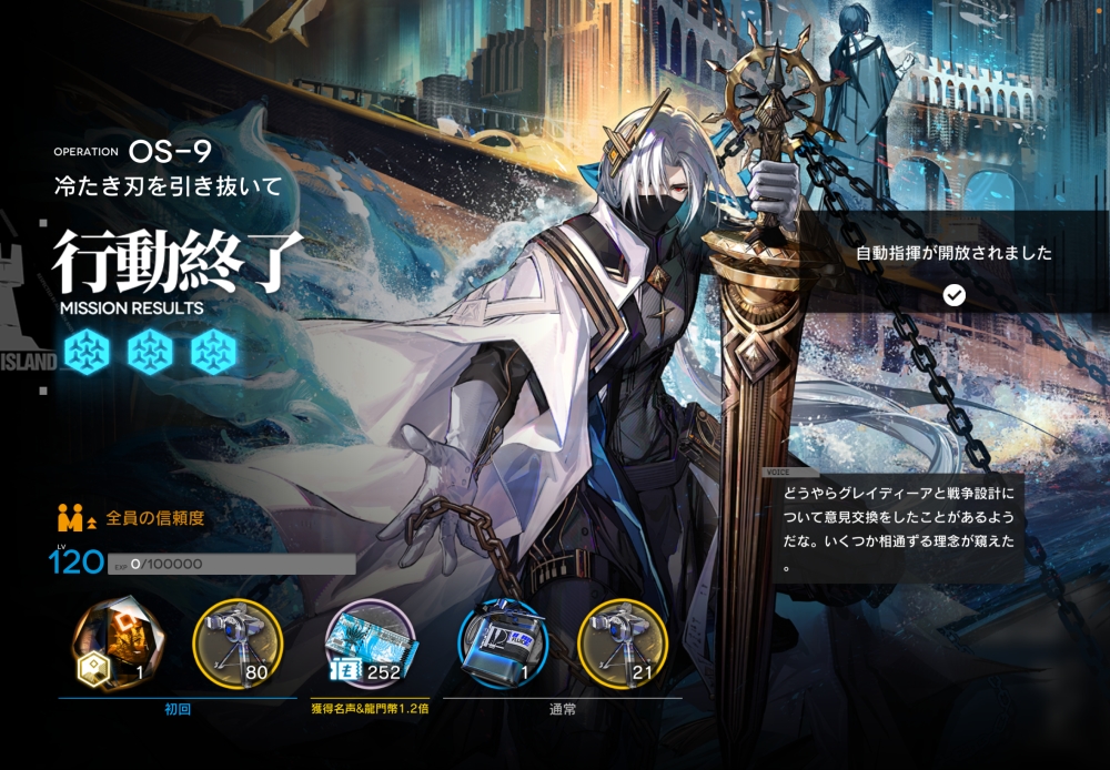 あとは、このまま敵を倒して作戦終了。無事、アークナイツ OS-9 攻略完了です。お疲れさまでした。