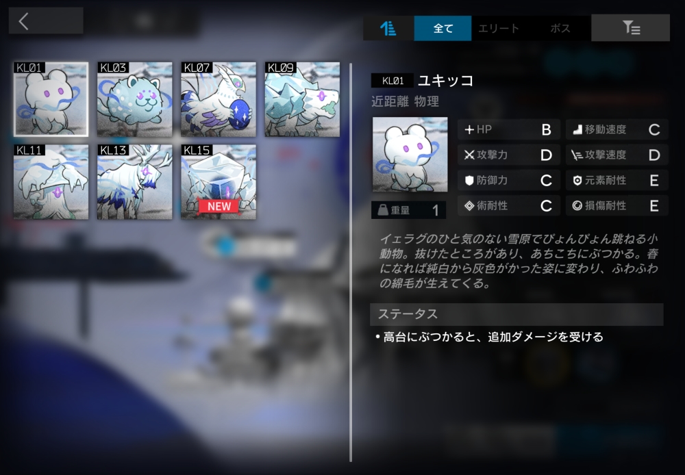 イェラグのひと気のない雪原でぴょんぴょん跳ねる小動物。強制移動で高台・マップ外周に衝突すると5000の確定ダメージを受ける。この効果は5秒のクールタイムがある。23体ほど襲いかかってくる。
