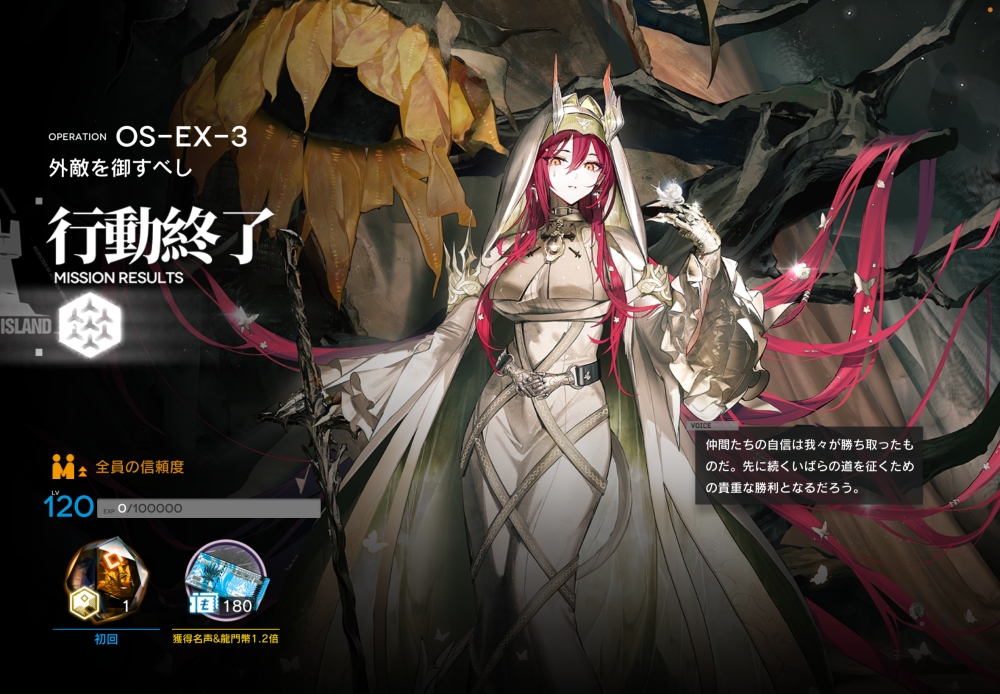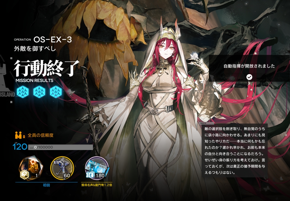あとは、このまま敵を倒して作戦終了。無事、アークナイツ OS-EX-3 攻略完了です。お疲れさまでした。